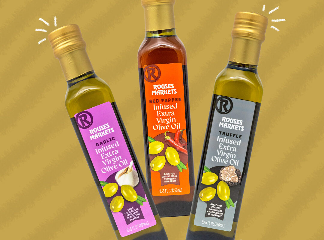 Rouses Markets has a line of infused extra virgin olive oil. Flavors include Garlic, Red Pepper, and Truffle.