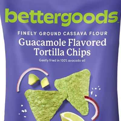 Industry news Walmart’s new Bettergoods private brand line includes guacamole-flavored tortilla chips made with cassava flour, which is made from the entire root of the cassava plant and is gluten-free.